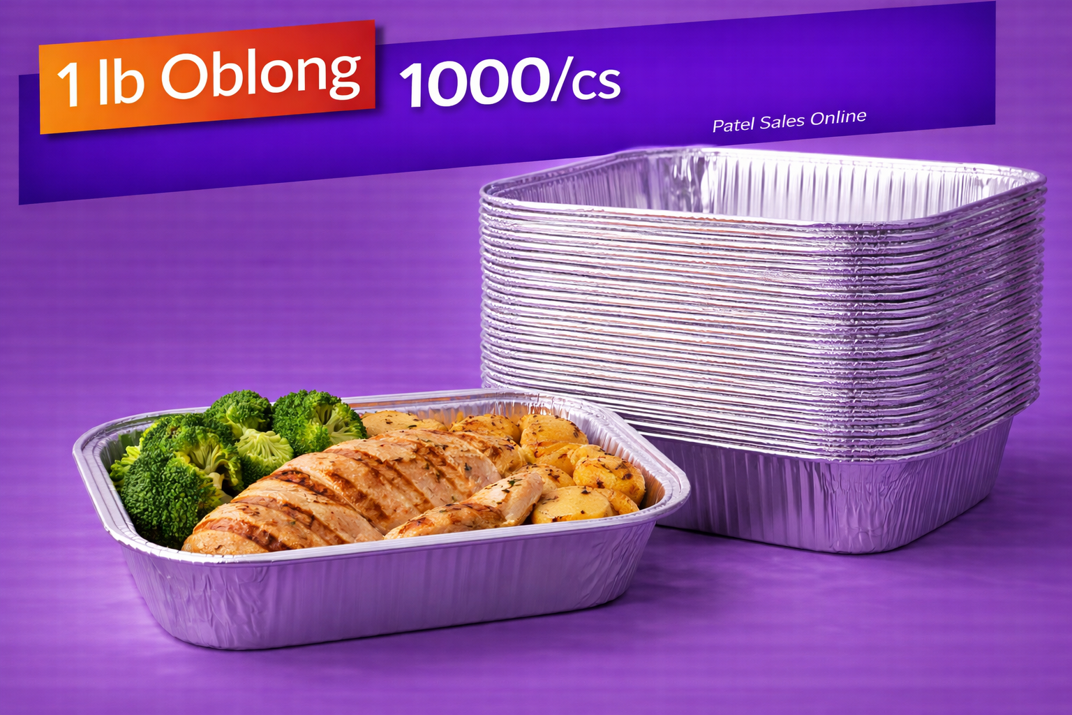 1 lb Oblong Foil Pans 1000/cs by Patel Sales