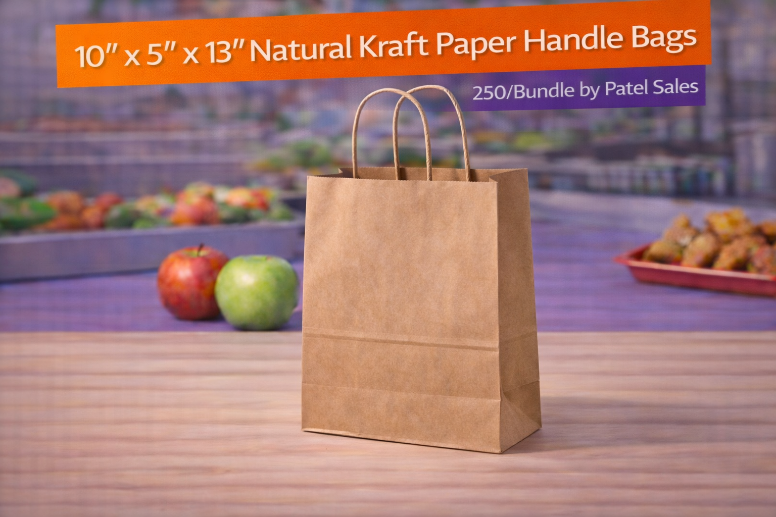 10″ x 5″ x 13″ Natural Kraft Paper Handle Bags – 250/Bundle by Patel Sales