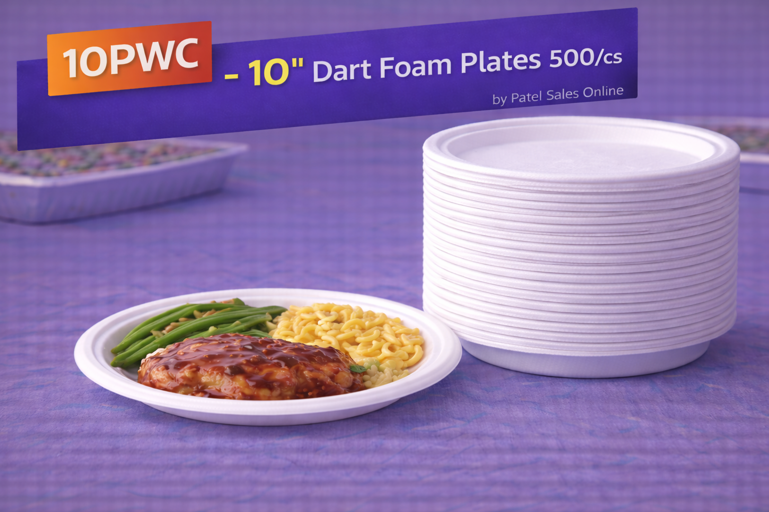 10PWC -10″ Dart Foam Plates 500/cs by Patel Sales