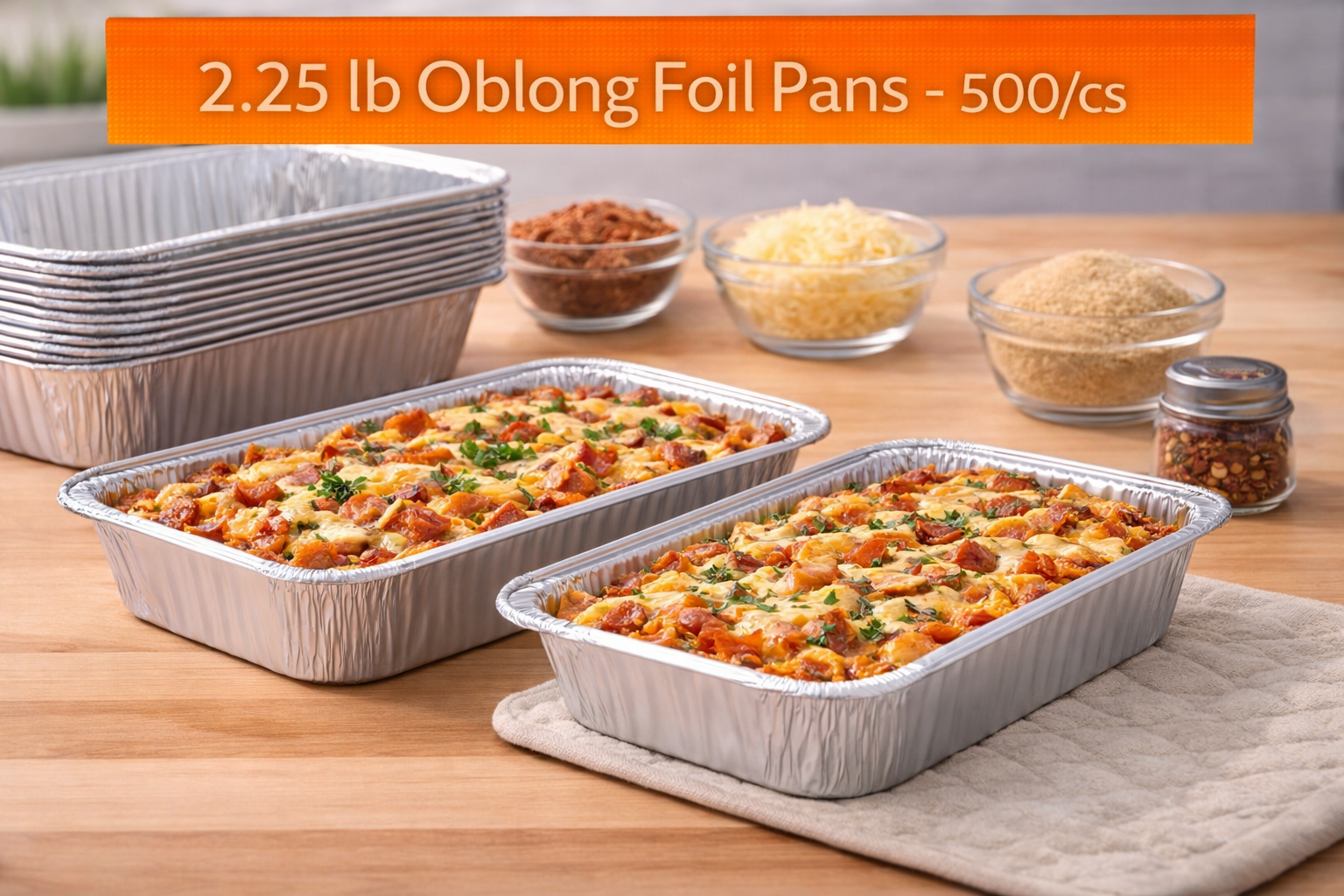 2.25 lb Oblong Foil Pans 500/cs by Patel Sales