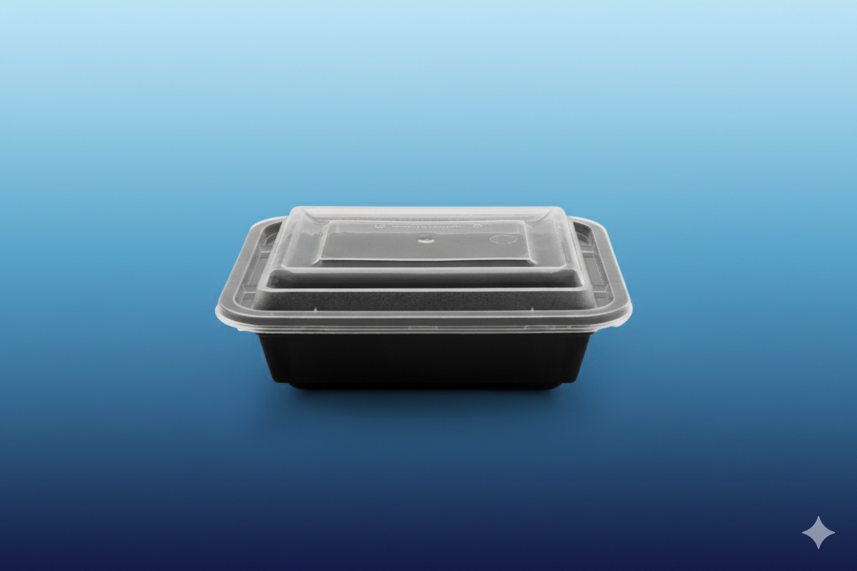 24 oz Black Rectangle Microwavable Heavy Weight Container with Lid – 150/cs