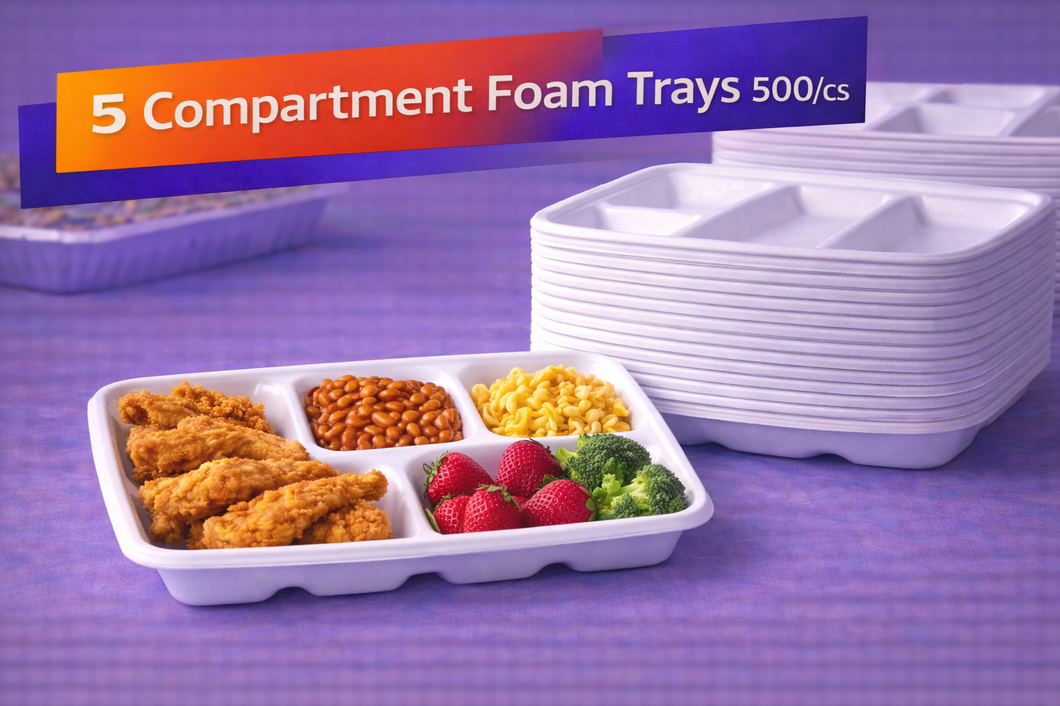 5 Compartment Foam Trays 500/cs