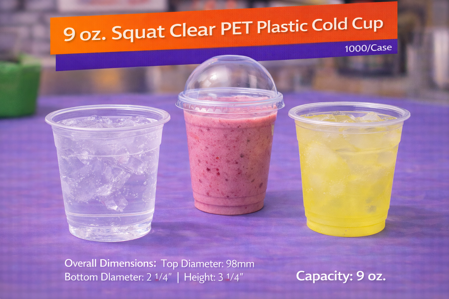 9 oz. Squat Clear PET Plastic Cold Cup – 1000/Case