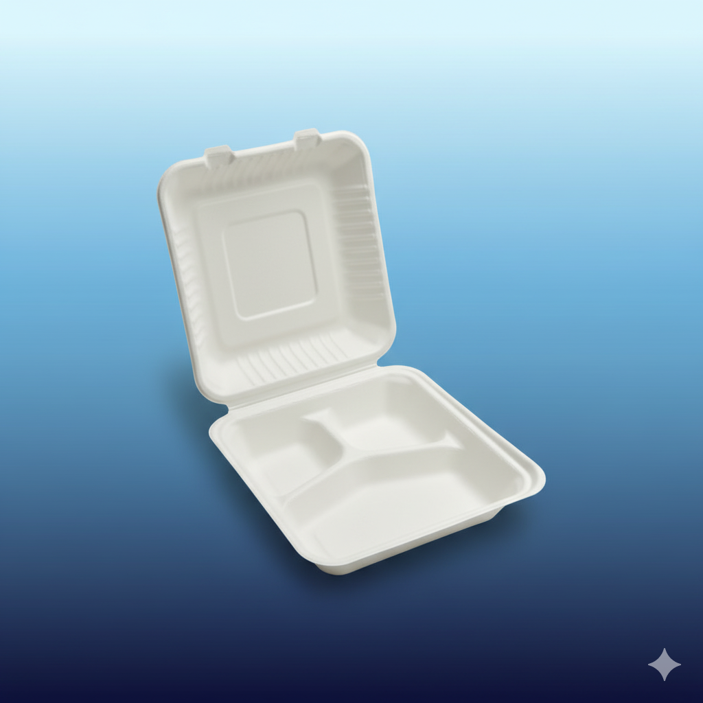 Be the first to review “9″ x 9″ x 3″ 3 Compartment Compostable Sugarcane / Bagasse Takeout Container – 150/Case”