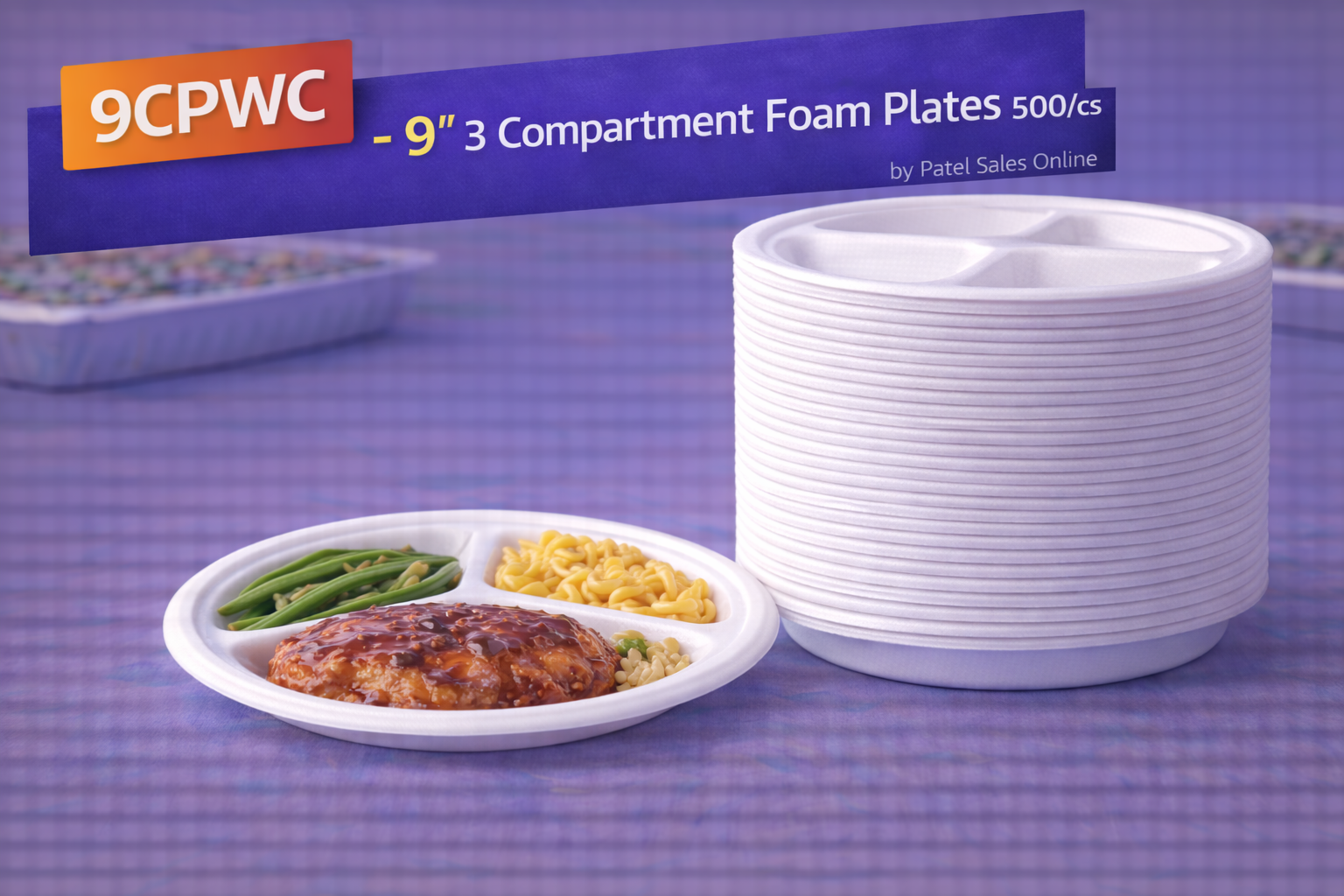 9CPWC – 9″ 3 Compartment Foam Plates 500/cs by Patel Sales