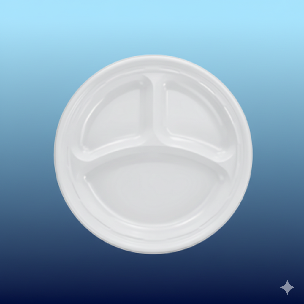 9CPWC – 9″ 3 Compartment Foam Plates 500/cs