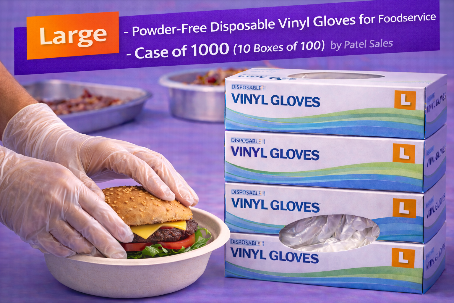 Large Powder-Free Disposable Vinyl Gloves for Foodservice – Case of 1000 (10 Boxes of 100) by Patel Sales