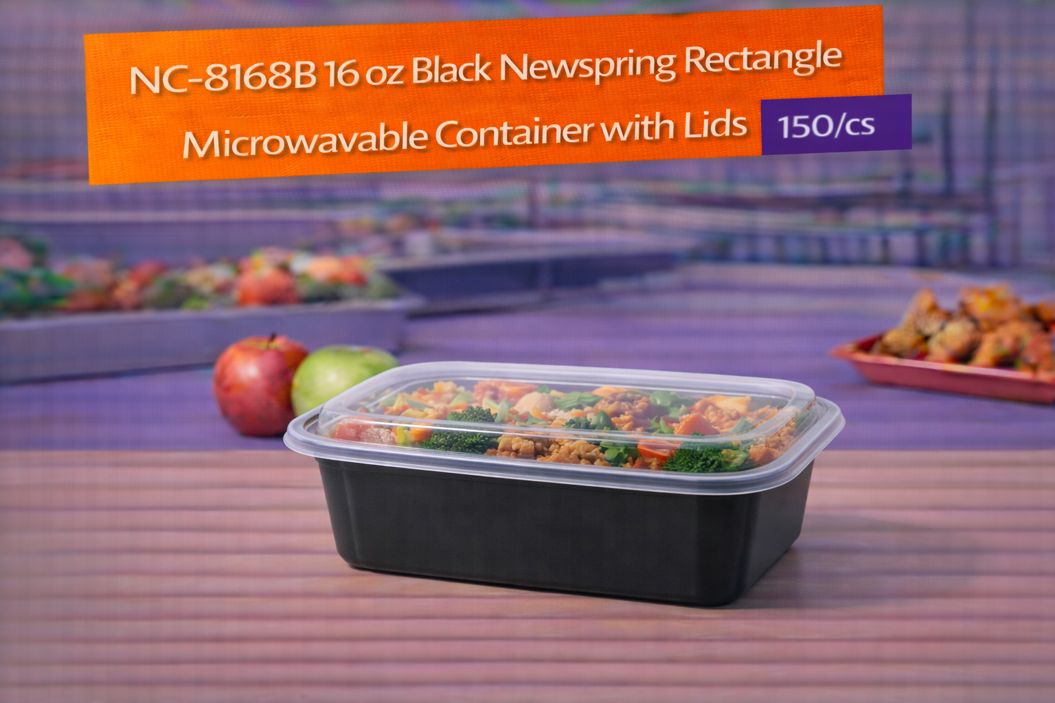 NC-8168B 16 oz Black Newspring Rectangle Microwavable Container with Lids – 150/cs