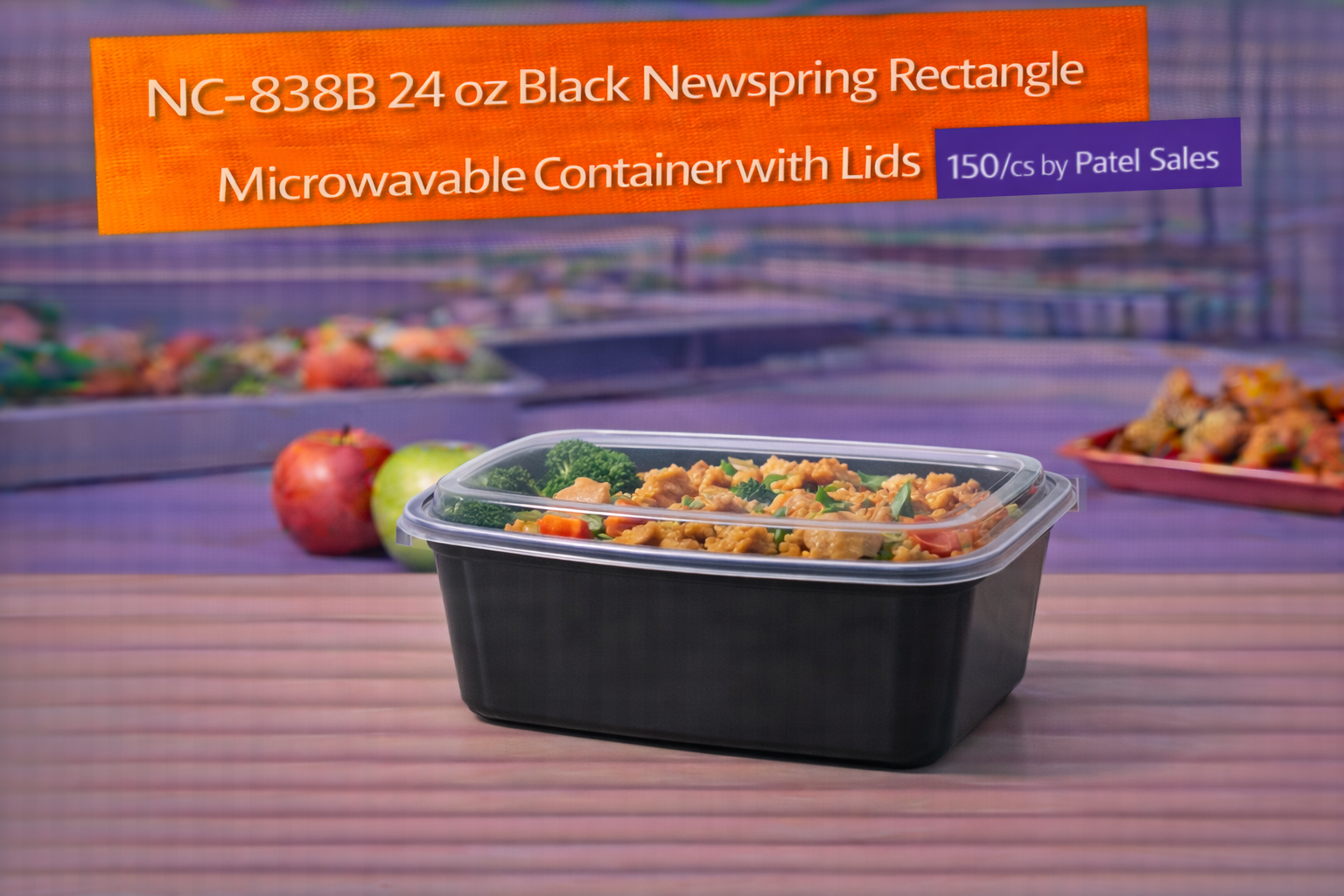 NC-838B 24 oz Black Newspring Rectangle Microwavable Container with Lids – 150/cs by Patel Sales