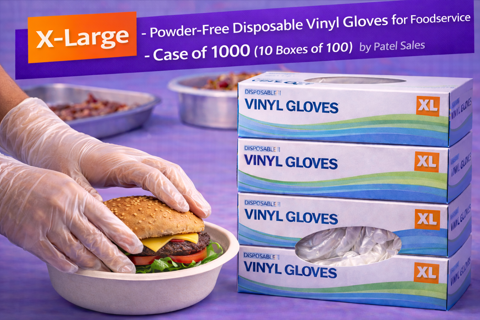 X-Large Powder-Free Disposable Vinyl Gloves for Foodservice – Case of 1000 (10 Boxes of 100) by Patel Sales